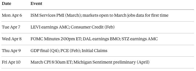 The S&P 500 spent most of March below its 200-day moving average and closed Thursday April 2nd near the low end of its 2026 range. US markets closed Friday April 3rd for Good Friday. The March jobs report (+178K, well above the +59K consensus) was released Friday but will be absorbed by markets Monday morning for the first time. It was stronger than expected, arriving in a tape that has been driven primarily by oil and geopolitics rather than economic data.