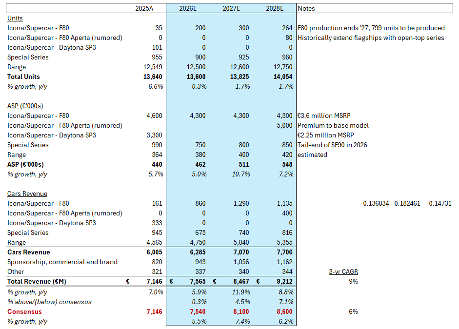 Taken together, these are not particularly demanding assumptions. They do not require a change in demand, nor a departure from Ferrari’s established playbook. They require execution and a degree of discipline around supply.