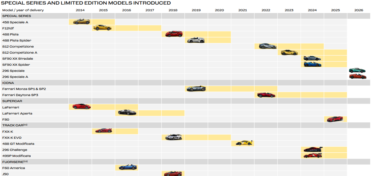 This is almost impossible to reconcile with observable reality. Look at the 2023 to 2025 period: shipments were essentially flat across those three years, and yet per-unit profitability improved meaningfully, primarily through mix, not even straightforward price increases. The 812 Competizione, SF90 XX, and Daytona SP3 each generated dramatically more EBIT per unit than the Range cars they displaced in the delivery mix. The pattern is consistent and structural.