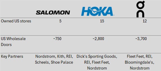 This has obviously not gone unnoticed by the Salomon team. Last week (first week of March 2026), the team brought on Laura Stauth as SVP of Sales to drive the specialty run and wholesale strategy in North America. In her prior role at Vans, she grew wholesale doors by 2x to the mid-single digit thousands globally as well as brokered relationships with larger U.S. retailers such as Dick’s, which could potentially come in handy with the new Salomon role down the line.