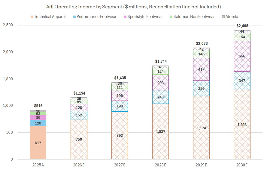 With evidence of category expansion beyond trail/hike and with planned channel expansion, Salomon’s footwear business legitimately has a shot at becoming a $2.5+ billion franchise in a few years: