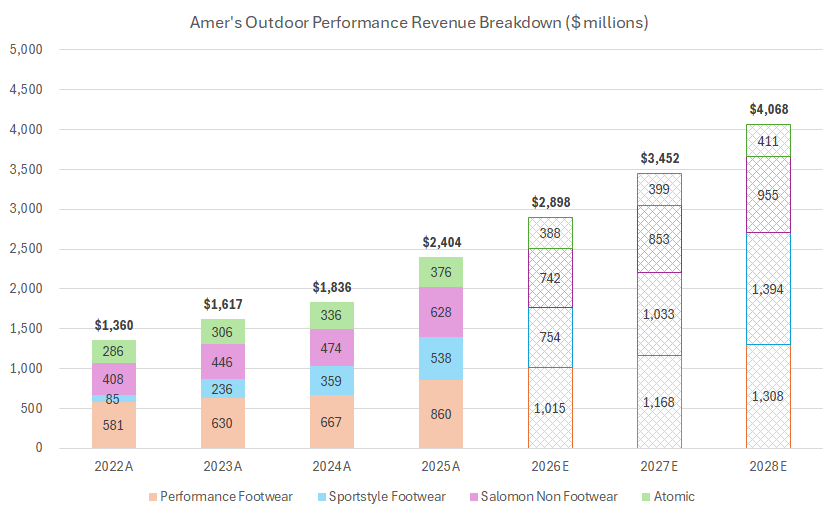 Looking at the entire Amer business from a valuation perspective, it’s clear that the asset is valued at a premium. What you need to believe is that both Arc’teryx and Salomon are still early on their execution path, and with Salomon, you need to believe in more open-ended growth for the Footwear business and particularly on the Sportstyle side. The checks and analysis provided in this and the prior post suggest that the two businesses are capturing share against legacy competitors as well as taking share in new adjacencies.