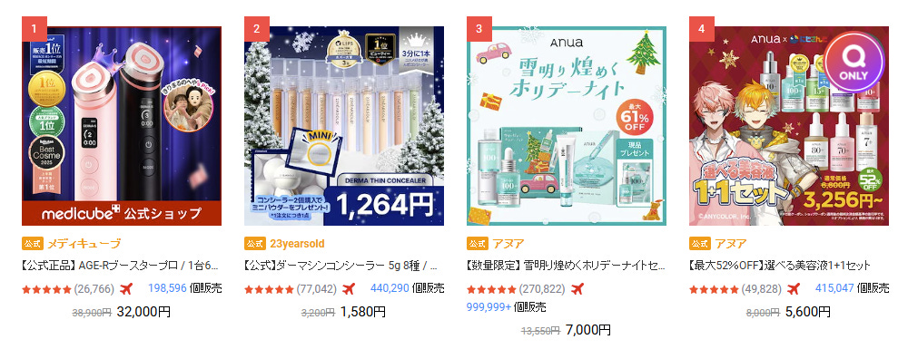 A view into the bestsellers list for Qoo10, one of the most popular online commerce sites in Japan shows Medicube devices, which command a high ASP, as the best selling product across its platform.
