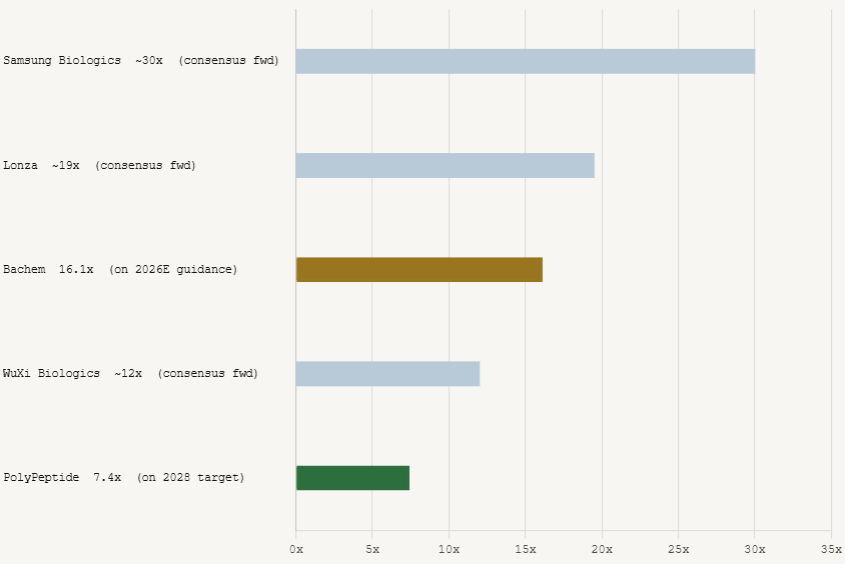 Where Bachem is the established premium player, PolyPeptide is the higher-beta recovery story.